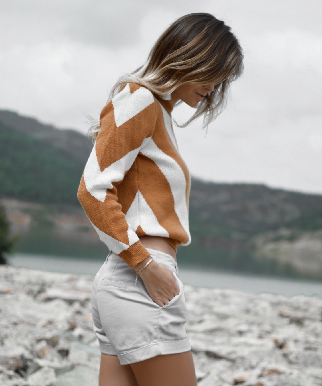 合わせる小物によってシックにもカジュアルにも着こなせ、ジャケットやアウターと合わせて長いシーズン活躍するアイテムです。